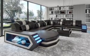 Eileend Leather Sectional Sofa with LED Lights | Futuristic Furniture