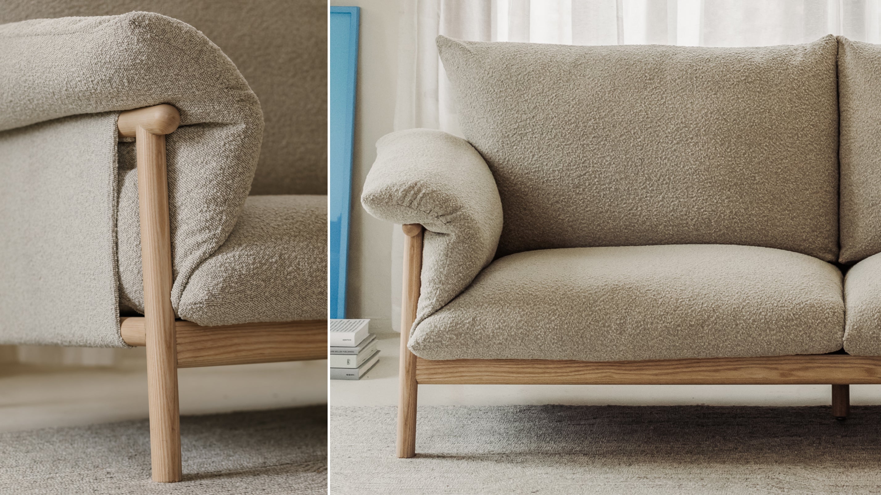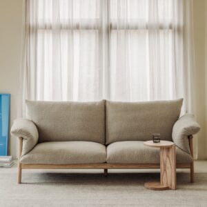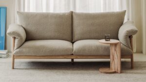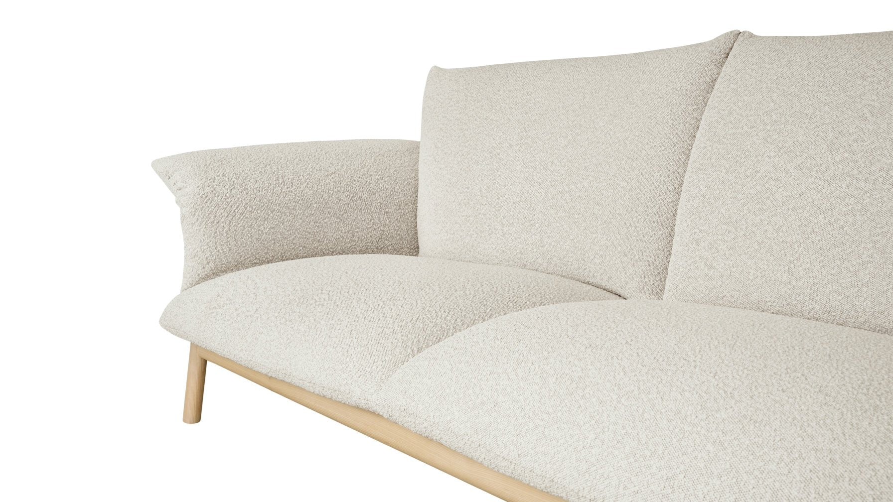 If our Pillow Talk Sofa could speak, it would invite you to sit down and get comfortable. An exposed solid ashwood frame creates a sturdy and beautiful base for plush cushions, and makes this sofa looks polished from every angle. Tightly stitched fabric arm slings ensure everything stays neatly in place, and a higher profile backrest provides lots of back and neck support—so you can sit back and chat a little longer.