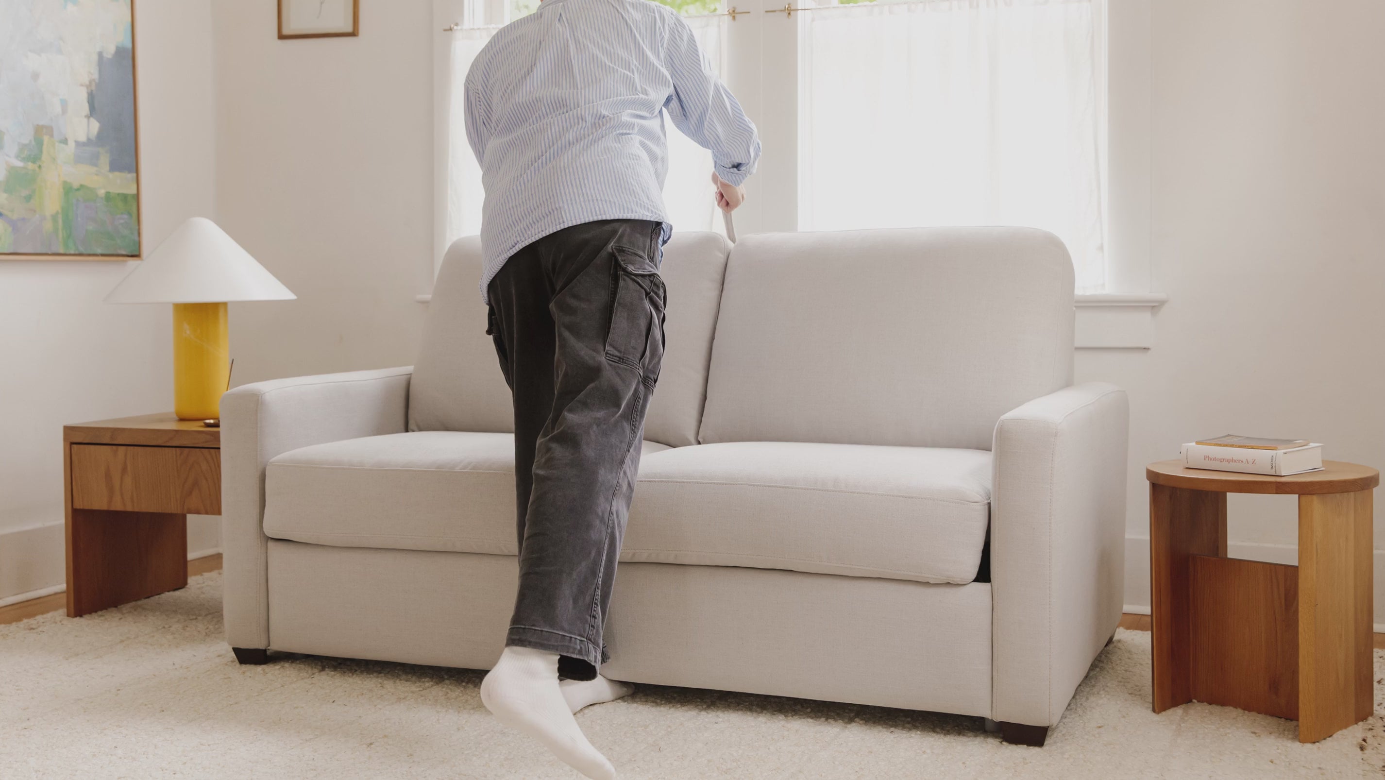 From cozy seat to restful retreat. Designed with comfort in mind, the Sleep Over Sofa easily converts from a couch to a queen sofa bed. It features our signature stain-resistant fabric and opens with a discreet fabric pull, without removing the cushions. Enjoy your night in.
